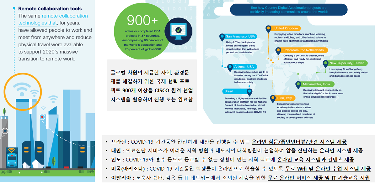 시스코는 영리기업을 대상으로는 당연히 웹엑스를 유료로 서비스하고 있지만, 공공 교육기관이나 공공 의료기관에 대해서는 무상 서비스를 지원함으로써 공적 영역에서 코로나 19 대응을 적극적으로 지원하고 있습니다.