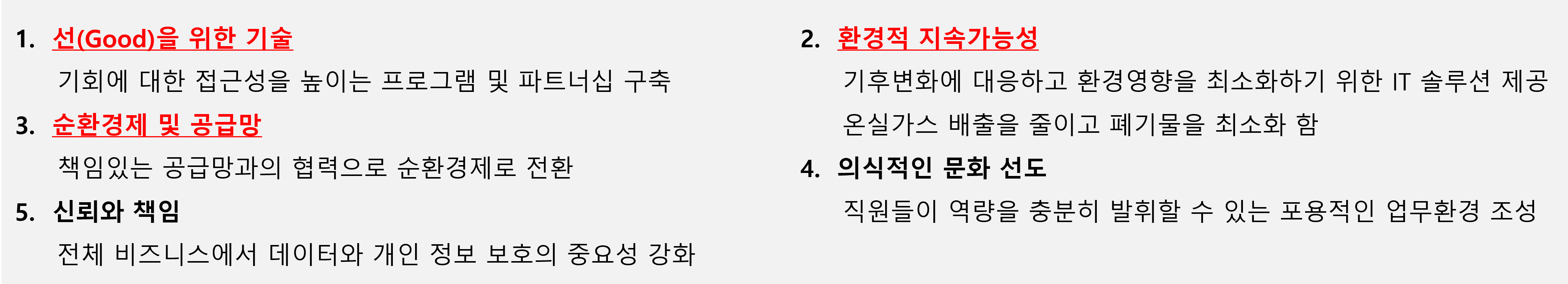 상품이나 서비스를 제조하고 유통하는 과정에서 CO2 배출이 확연히 들어나는 산업의 기업들이나, 글로벌 공급망이 복잡해서 제3세계 생산협력업체들의 인권이나 노동권 문제가 항상 도마에 오르는 기업들은 지속가능(ESG)경영의 해결 과제들이 분명해 보입니다. 그런데, 최첨단 기술을 다루는 IT 기업들은 어떨까요?