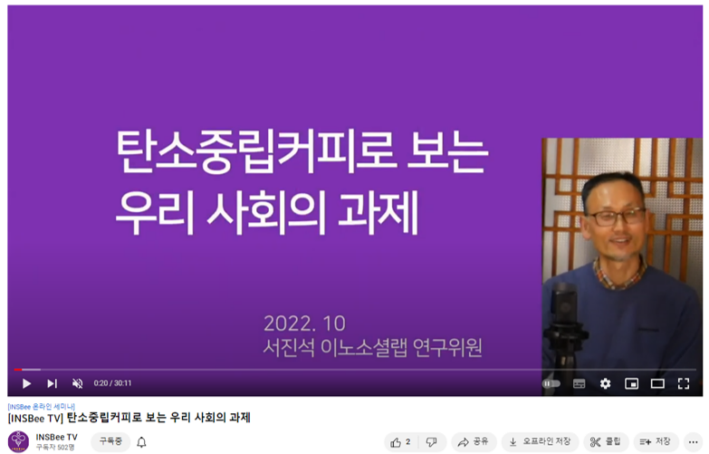 | 인스비 TV _ 탄소 중립 커피 _ 키자미테이블 엄소희 대표 (0) | 2022.11.13 |