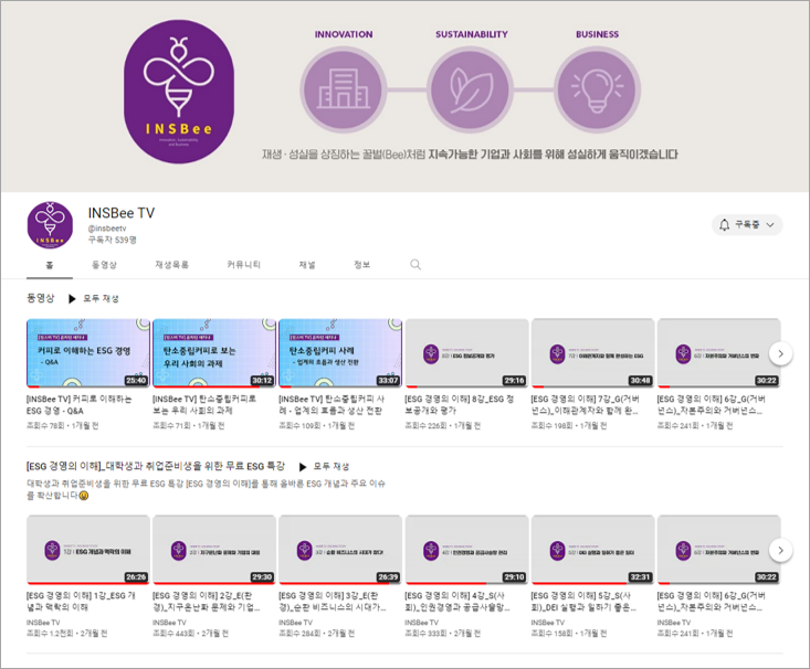 이노소셜랩의 <인스비 TV>도 추천할 만한 유튜브 채널이 되기 위해 더 많이 노력하겠습니다.