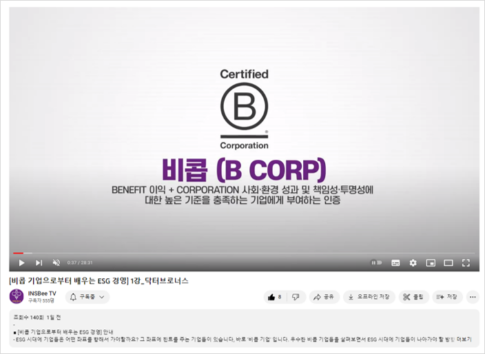인스비의 무료 ESG 특강 시즌2를 시작하였습니다! 시즌2의 주제는 <비콥 기업으로부터 배우는 ESG 경영> 입니다.