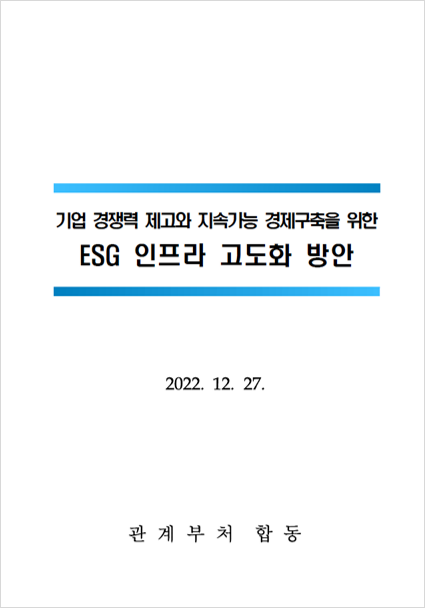 지난 정부의 ESG 대응에 좋은 점수를 줄 수 없었다. 마찬가지로, 이번 정부가 지난해 말에 발표한 <ESG 인프라 고도화 방안_이하 방안>도 (좋게 봐서) 반쪽 짜리 대책이다. 지난 정부나 이번 정부나 ESG에 대한 이해가 충분하지 않아 보인다. 그래서 걱정이 많다.
