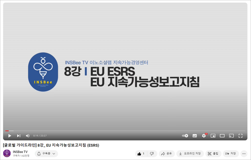 지속가능경영, ESG 무료 동영상 교육과 자료는 ☞ 클릭 인스비 TV
