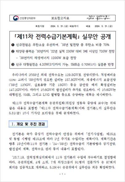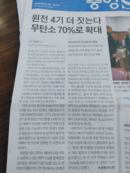 푸르른 5월의 마지막 날에 우울한 발표가 나왔다. 대형 원전을 3개나 추가하고 아직 기술이 설익은 소형원전도 1개를 만들겠다는 <제11차 전력수급기본계획>이다. 문재인 정부의 '탈원전' 정책을 폐지하겠다는 대선공약을 지킨셈이다.